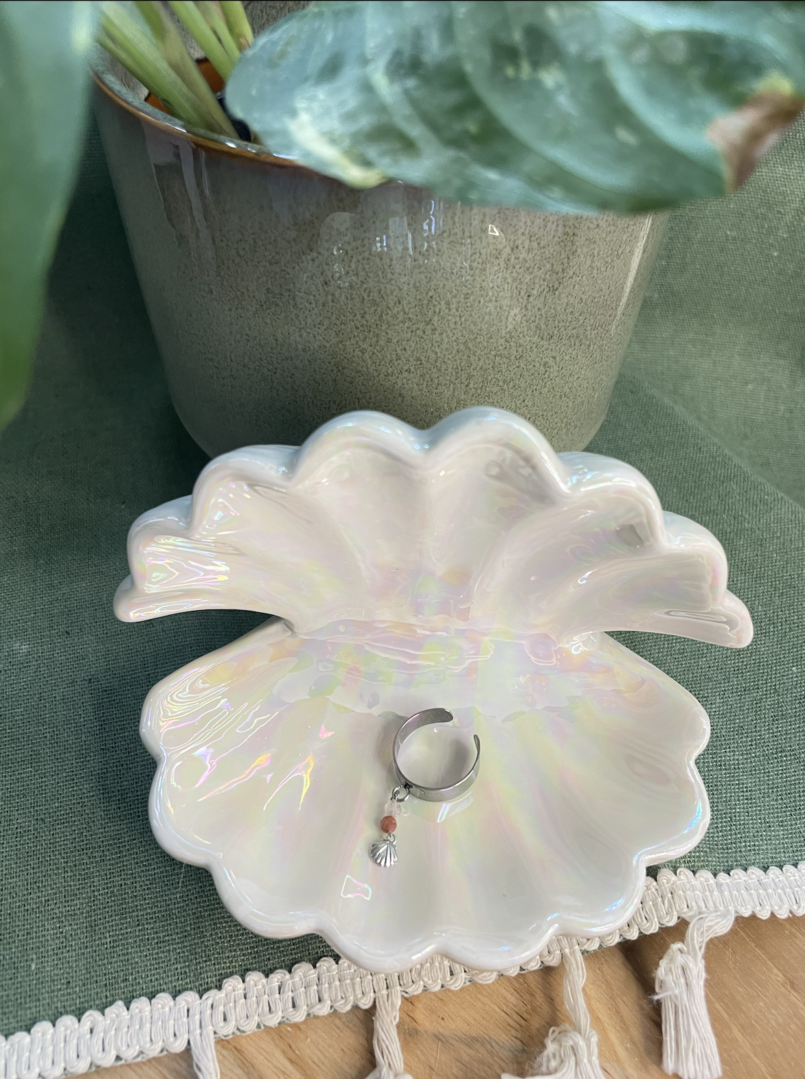 Perles d'Héliolite et coquillage en acier inoxydable.