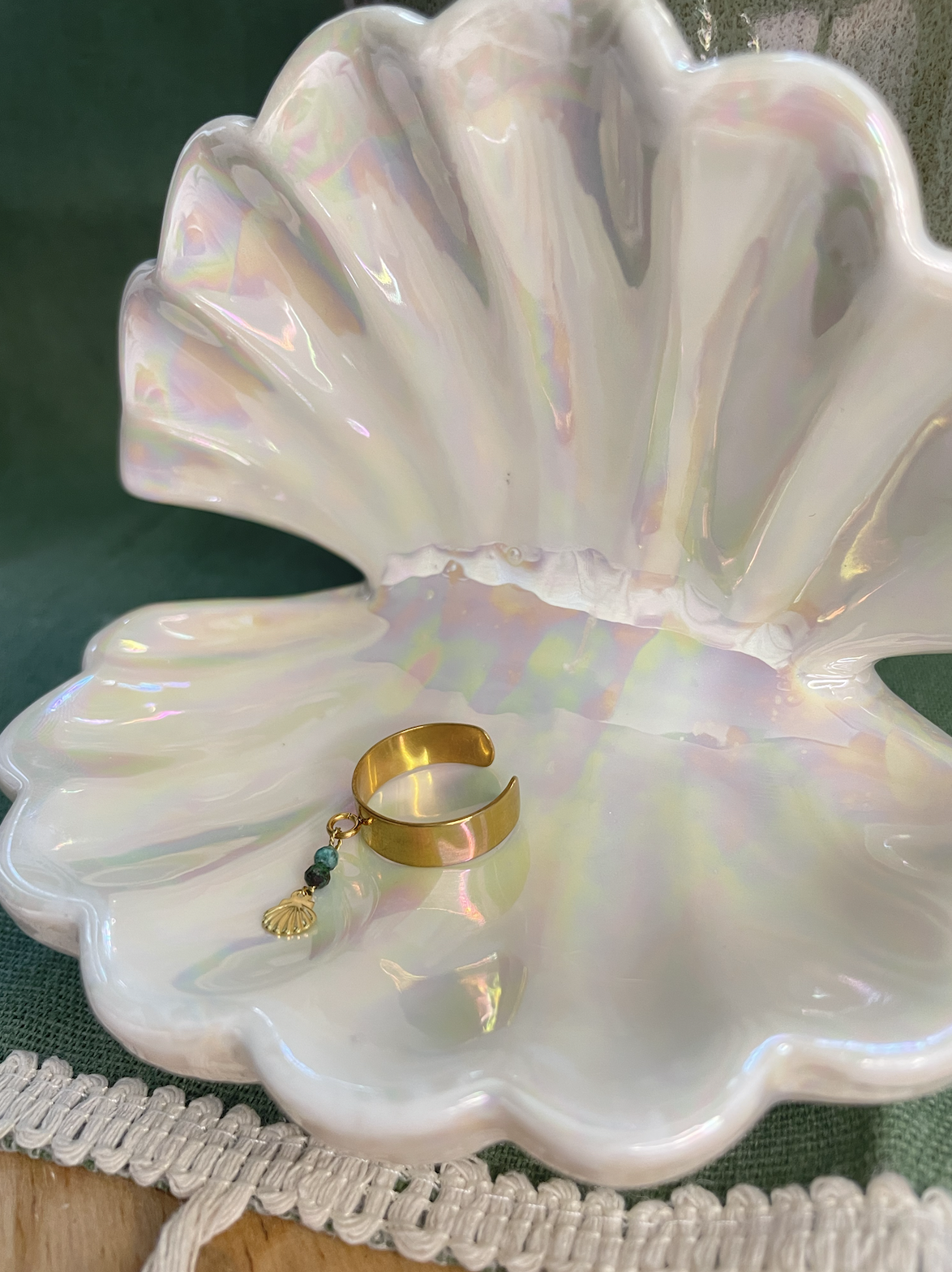 Perles de turquoise africaine et coquillage en acier inoxydable.