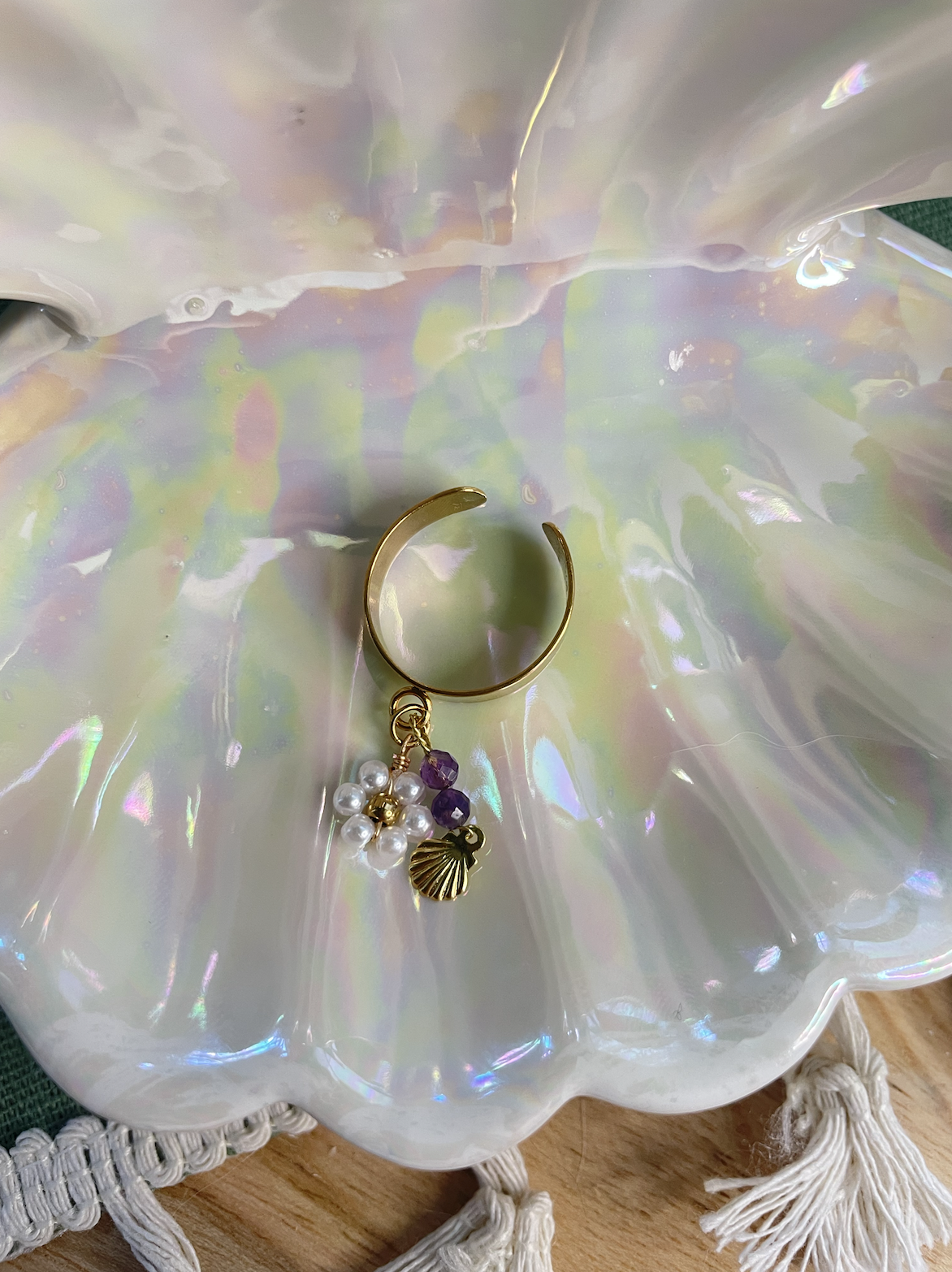 Perle de culture d'eau douce, breloque fleur perles et acier inoxydable et perle d'améthyste.